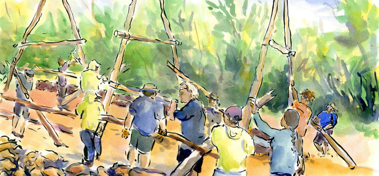 This area is famous for its fishing families. We celebrate the continuum of their relationship to these lands and oceans through building a hālau waʻa, a long house for canoes.
